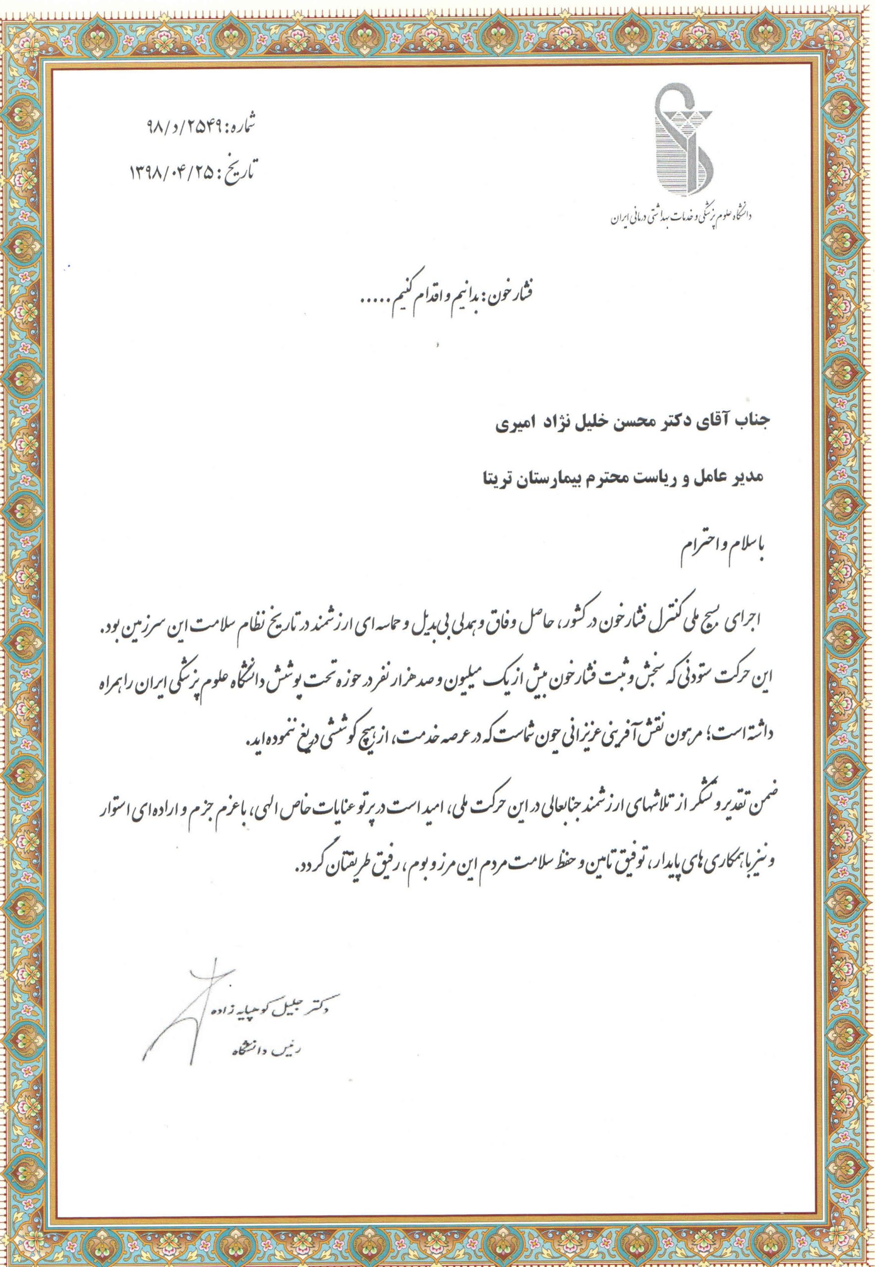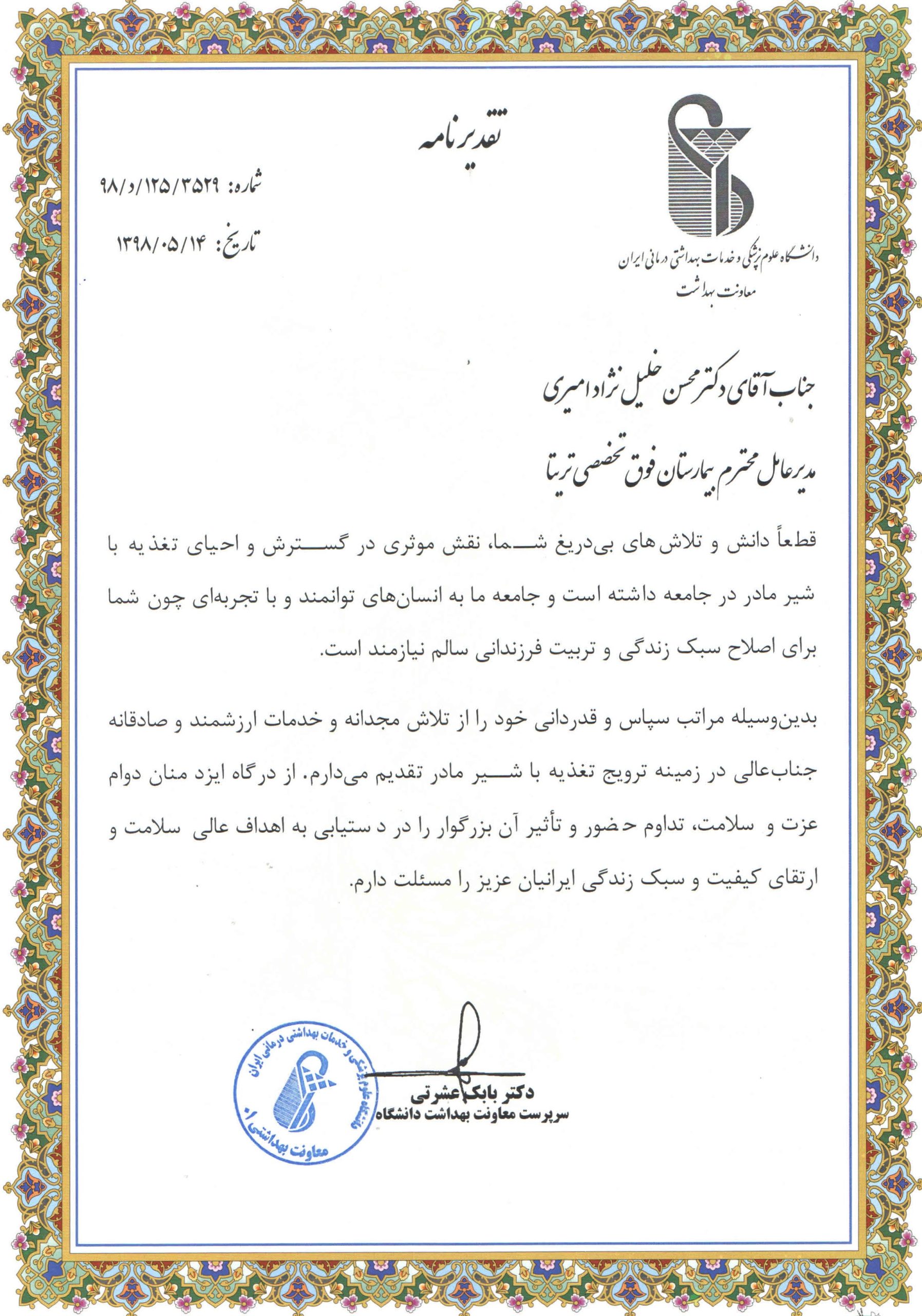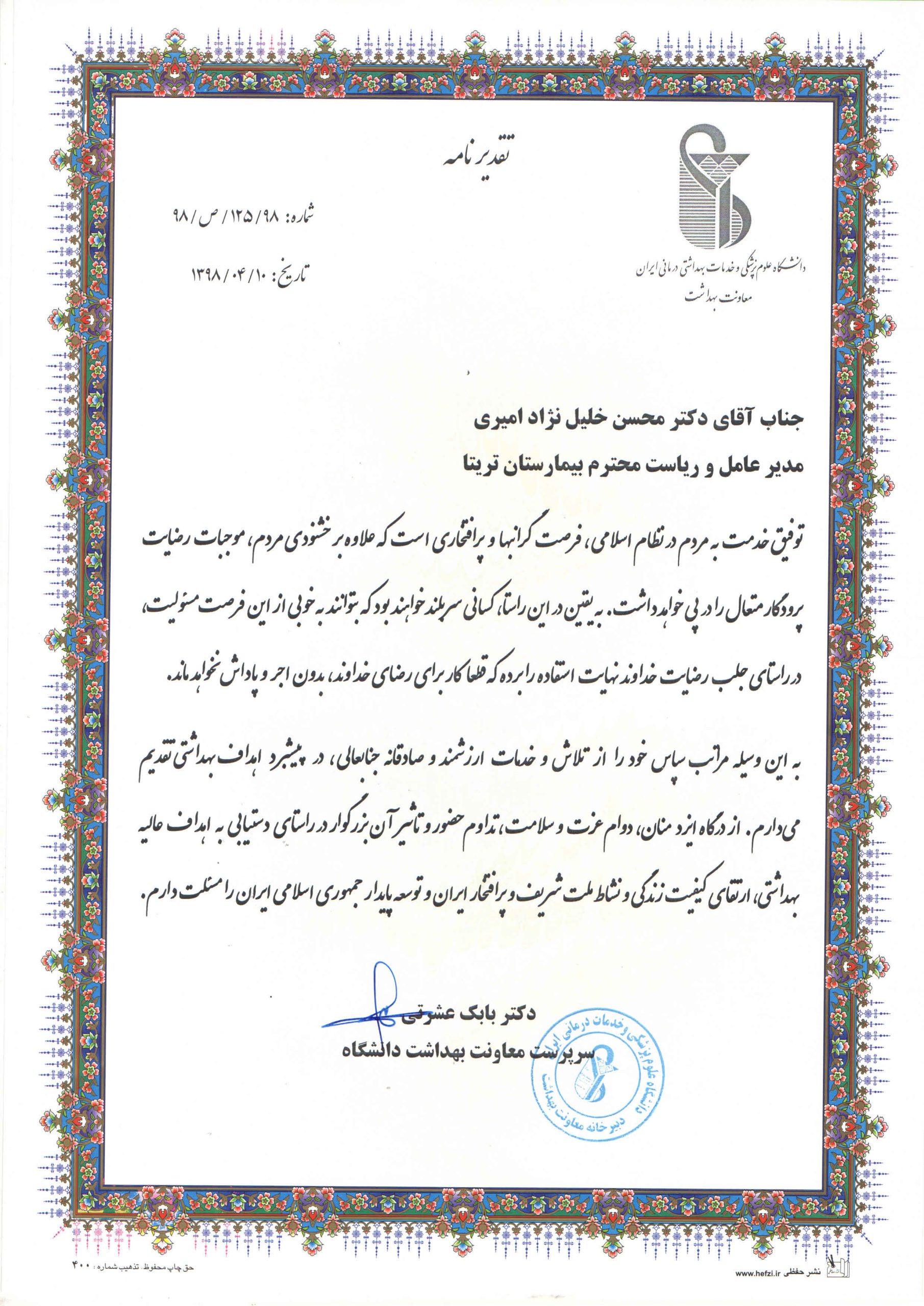 • دریافت گواهی بیمارستان های ارتقاء دهنده سلامت(HPH) به منظور افزایش کیفیت زندگی بیمار و در نهایت کمک به سلامت جامعه